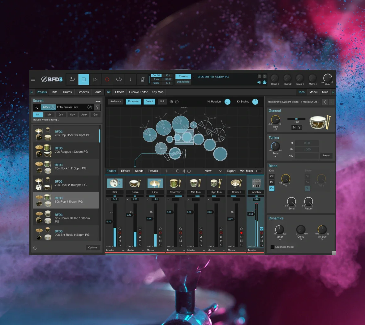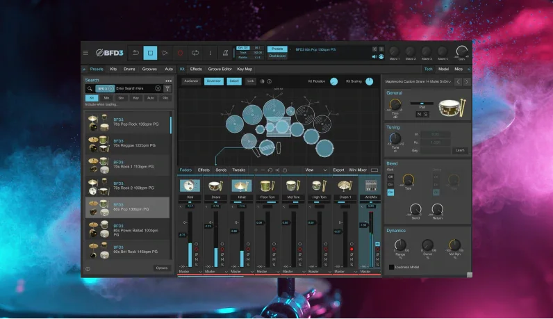 BFD is the virtual drum software of choice for producers, mix engineers, songwriters, and electronic drummers around the world. Known for its detailed drum sounds and in-depth mixing options, it delivers studio-quality acoustic kits captured with precision for modern music production.